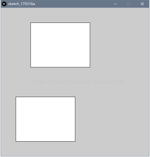 注意rect()函数的参数填写。第一,第二个参数用来控制矩形绘制的起始点,这个例子里用了(0,0)点作为起始点,那为何画出来的效果是我们要的?答案就在translate()函数。这个函数可以重新定义所有绘画的起始点,也就是绘画的偏移量。假如再画一个方框,rect(50,50,100,100),那这个方框的起始点其实是在(150,100)点上,把translate()的偏移量叠加。
